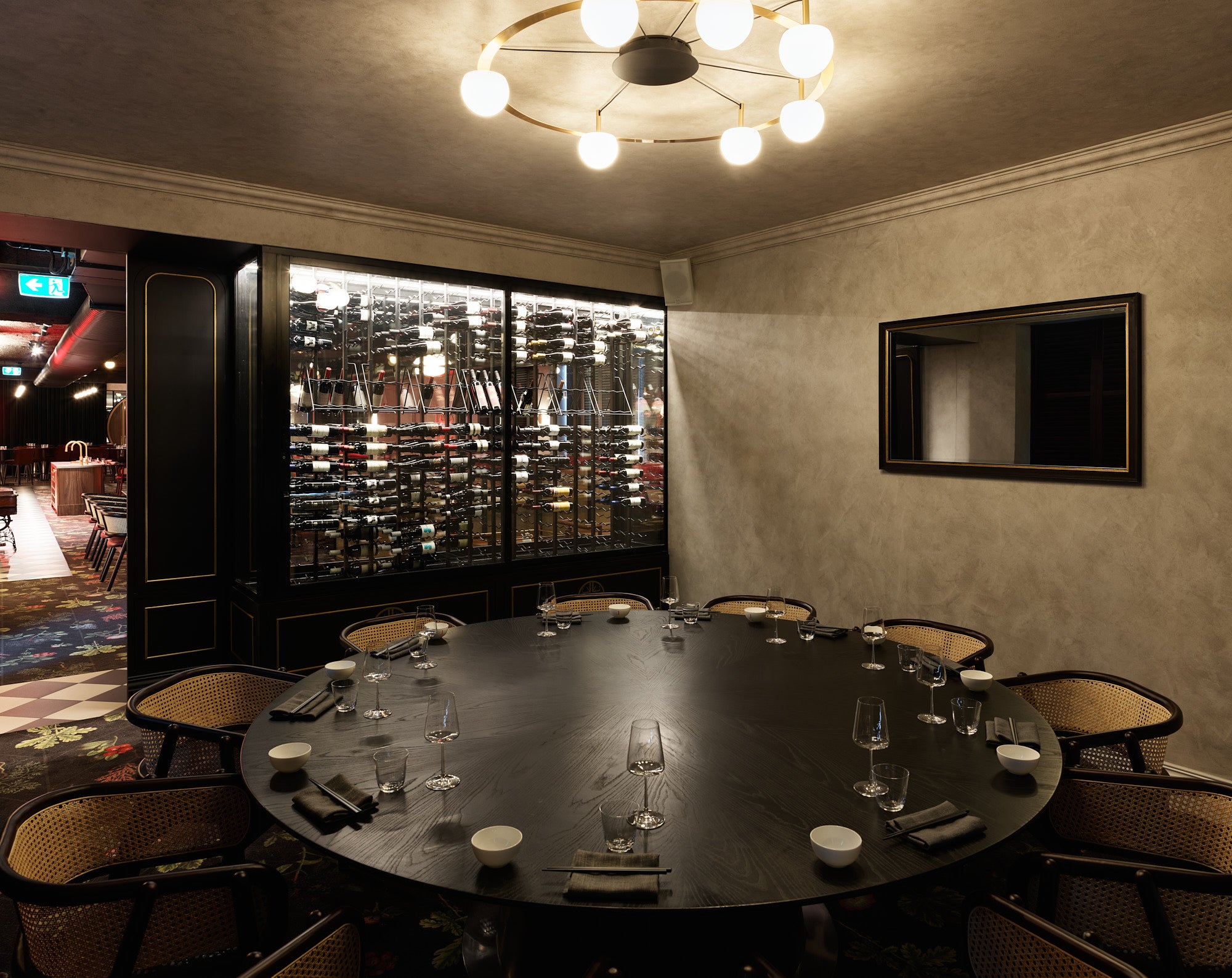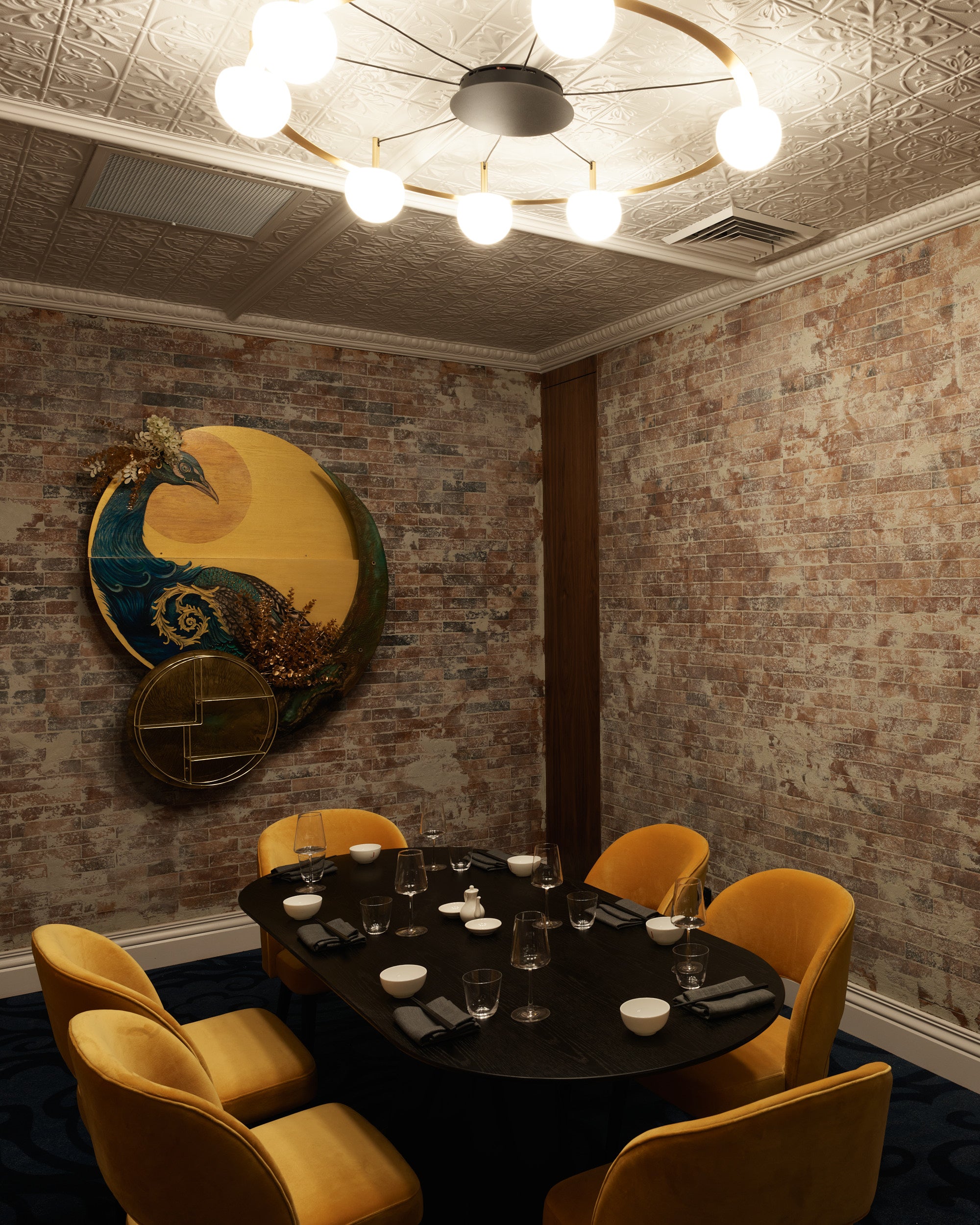 The result is a layered lighting experience that enhances the restaurant's design narrative, inviting diners to experience the ambiance as much as the cuisine.