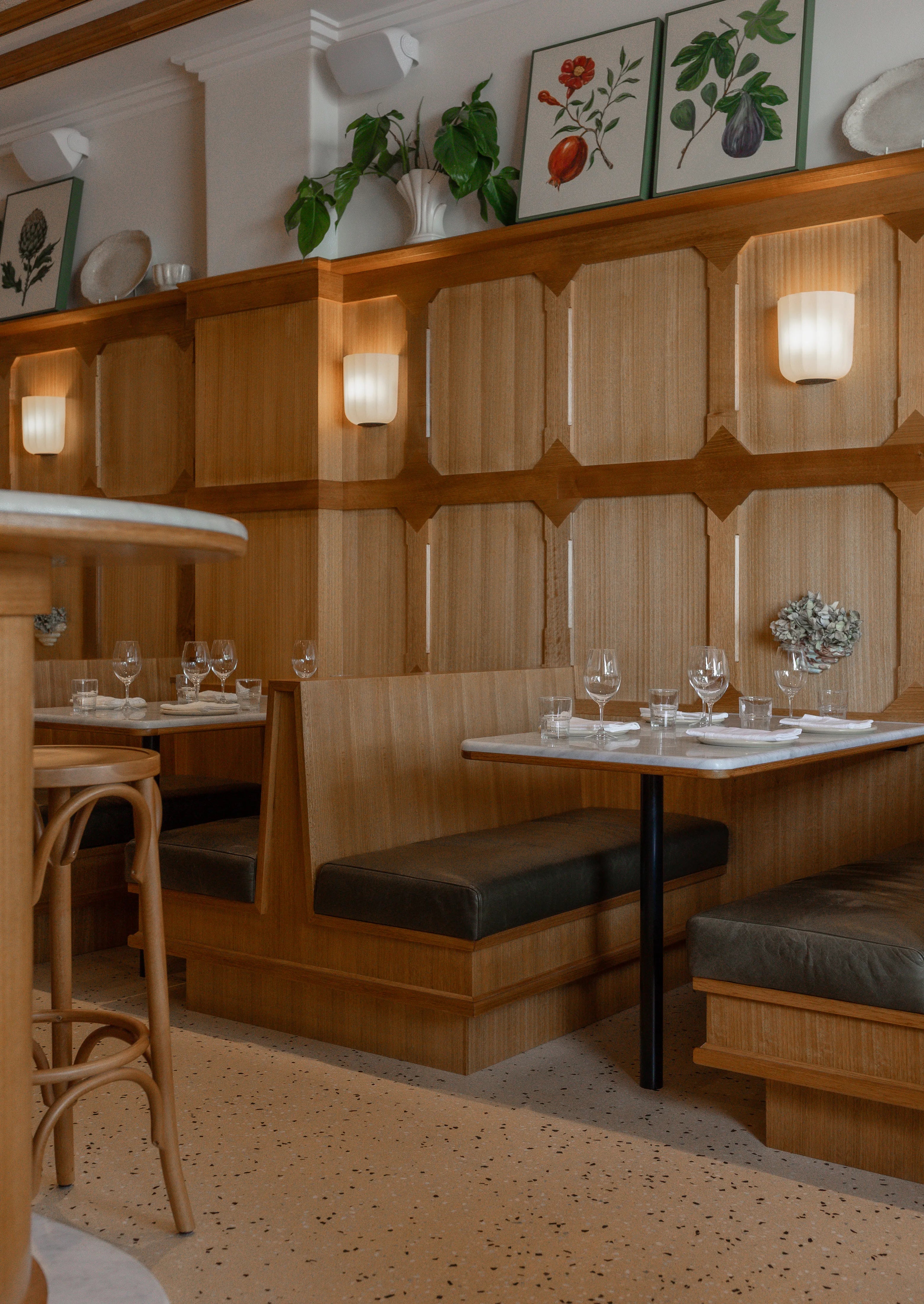 As described by Woods, Flora's journey to completion was not without drama. "Councils battled, and heritage navigated. Flood, fire, engineers, false messiahs, and tribulation before the rapture," he recounts - a testament to the creative resilience behind this project. The result is a grounded yet elegant interior that feels both fresh and timeless. Natural textures, botanical artwork, and thoughtful architectural detail converge to create a tranquil dining experience rooted in connection to the land.