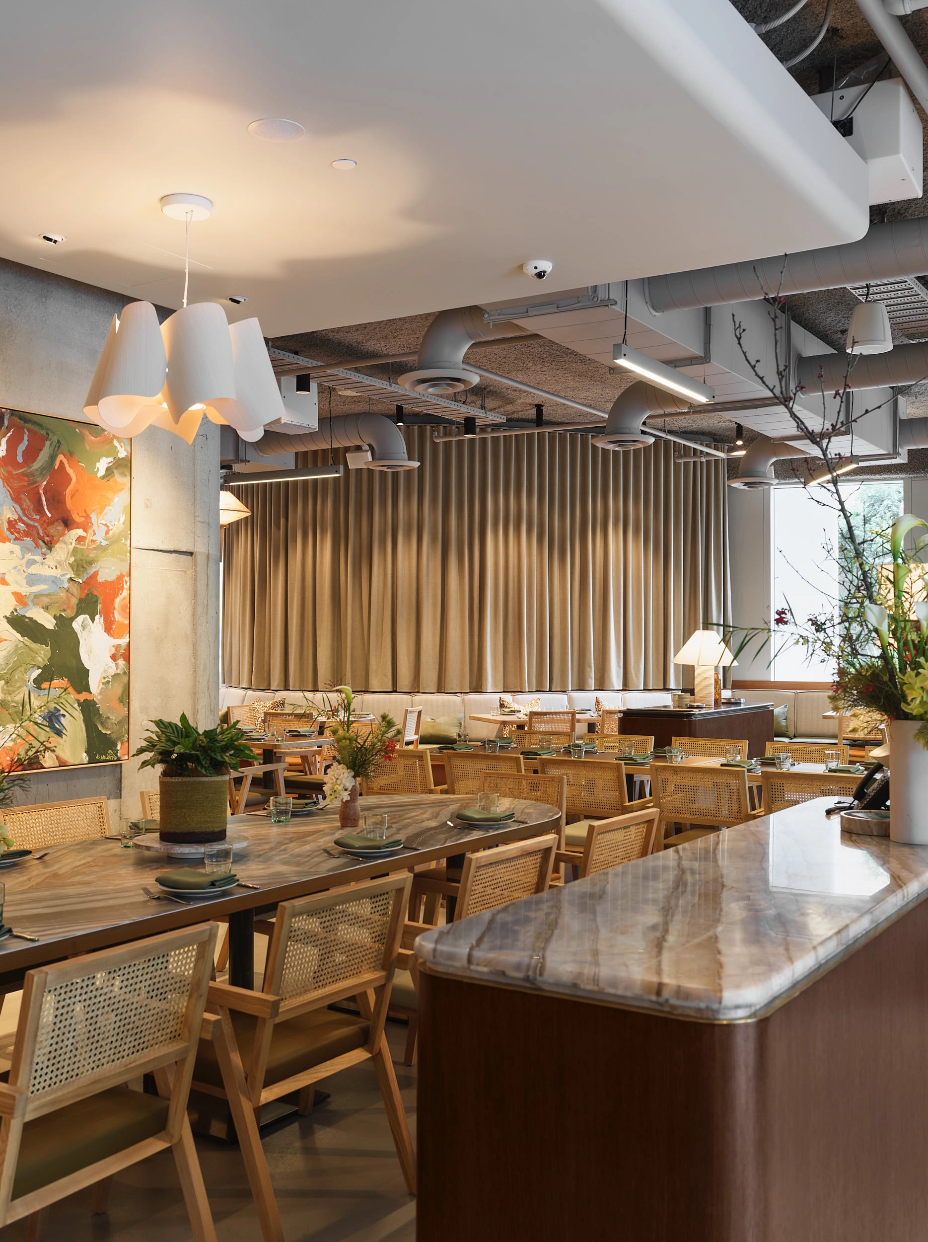 Working closely with the design and construction team, Nook Collections ensured every lighting detail enhanced the space’s architecture and culinary mission. The final result is a restaurant that transitions effortlessly from day to night, with lighting playing a key role in its ever-evolving ambiance.