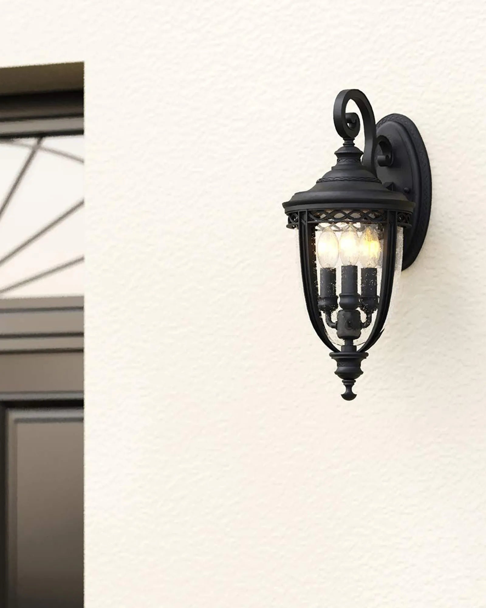 The English Bridle Wall Light blends the charm of the English countryside with the elegance of a stately manor. Featuring clear seeded glass, it delivers a soft, classic glow that enhances any outdoor space. Available in British Bronze or Black, this outdoor wall light complements both traditional and modern exteriors. As part of the English Bridle collection, it pairs seamlessly with smaller wall lights, pendant lights, and pedestal lights for a cohesive look. With an IP44 rating, it is designed for durability in outdoor environments, making it perfect for porches, patios, or garden walls.